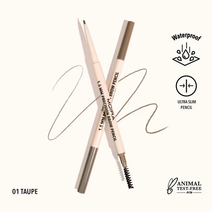 Achieve perfect brows with our MOIRA 1.5MM Precision Brow Pencils. An ultra-slim retractable tip to help create hair-like strokes for a natural brow finish. This rich, waterproof formula will stay put for all-day wear.